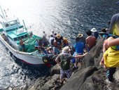 小島の岩場に接岸 |