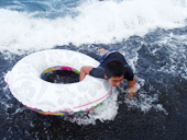 | スコールの中で波乗り? |